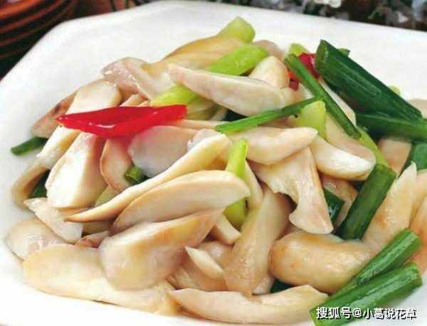 原料:北极贝唇50克,茶树菇200克,红小米辣碎10克。