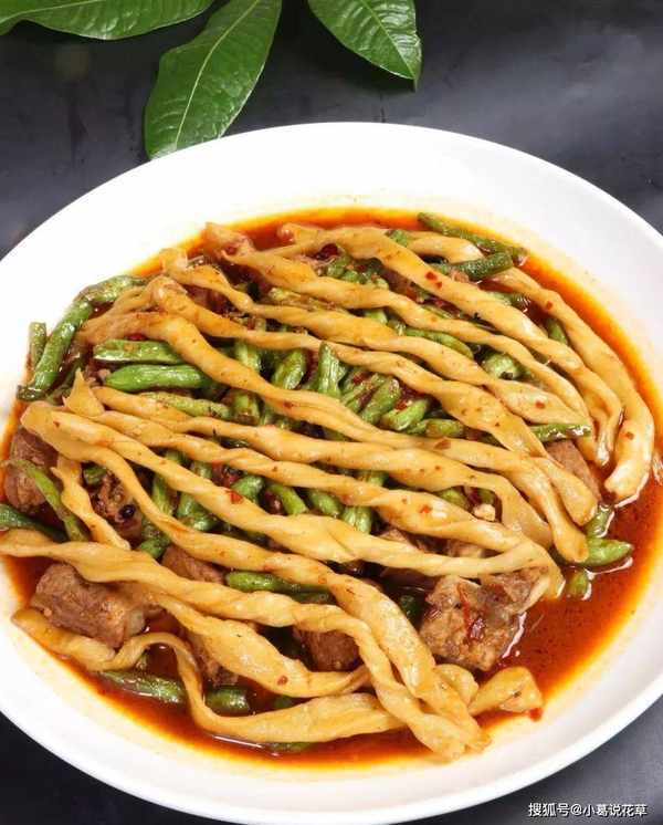 卷子在河北保定用途广泛,是炒豆角、烧鲫鱼的好伴侣。此菜将排骨、豆角,与卷子一同焖制,成菜量大实惠,极具可食性。
