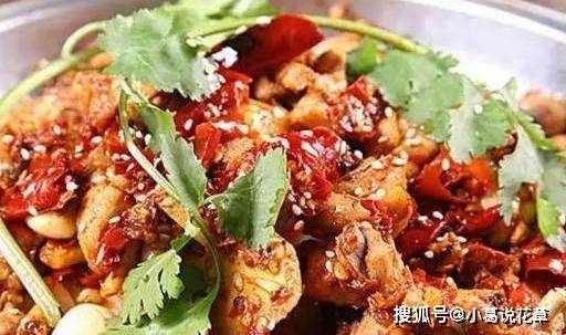 4.将炸好的鸡块翻炒。加入炒好的蔬菜拌匀。加入五香粉、孜然粉、花椒粉、辣椒粉、煮熟的芝麻、香油炒至顺滑。
