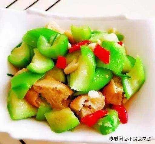 1、海绵去皮切块,油条切小块,姜切丝,蒜切片,辣椒去籽切块。
