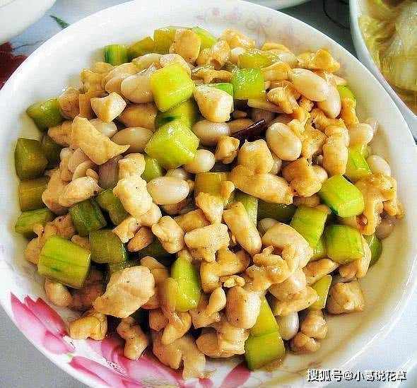 1.鸡胸肉切丁,加盐拌匀,腌半小时。黄瓜丁、干辣椒丁
