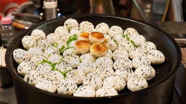 五.生煎馒头 最常见的美食要做出名气来,才彰显其中功夫。生煎馒头,也就是生煎包,软糯的皮,金黄酥脆的底,再加上肉馅的鲜,搭配上一碗酸辣开胃的粉丝汤,美好的一天就开始了。