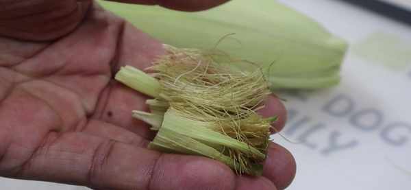 第一步:首先我们将玉米的胡须剪掉一部分,把腐烂掉的和干掉的胡须全部剪掉。