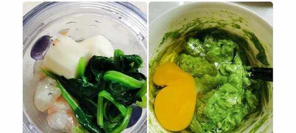 将山药、蔬菜和虾仁放入锅中蒸熟蒸软,倒入料理机中打成泥备用,也可以放个鸡蛋增加口感。