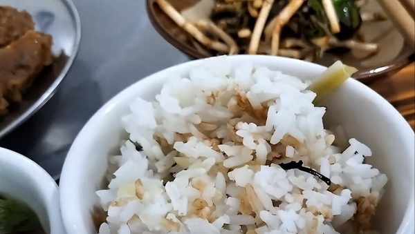 店里用来搭配豆花食用的饭,不是普通的白米饭,而是四季豆土豆焖饭。新鲜的四季豆、土豆,放入适量的油、盐炒制后,将淘洗干净的米,铺在上面,小火慢慢地焖制,柴火焖煮出来的饭,粒粒分明,用铲子搅拌均匀后,食用起来咸淡适口,带有一股浓浓的柴火香,偶尔还能吃到一点香脆的锅巴,就算不与豆花一起食用,单独吃也非常不错。