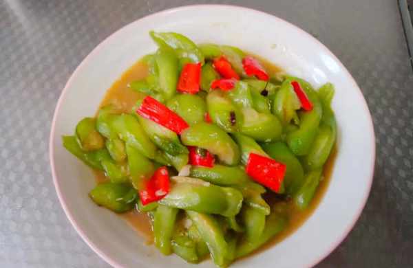 食材:丝瓜,红椒,青线椒,花生油盐蚝油,葱蒜末