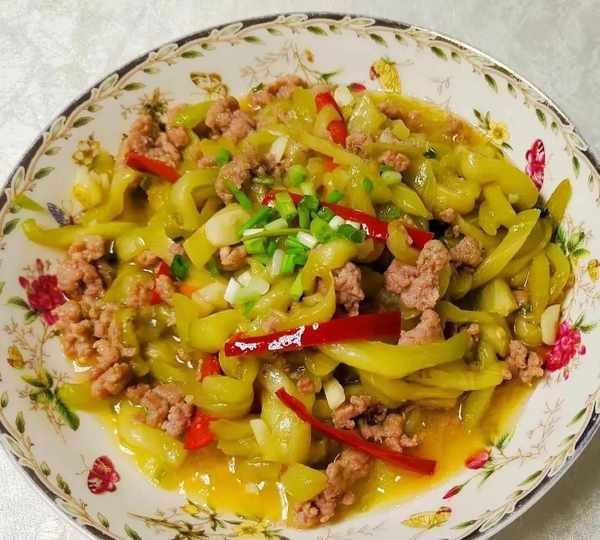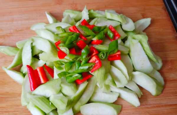 食材:冬瓜,青红椒,肉末,花生油,盐生抽,老抽,蒜片,