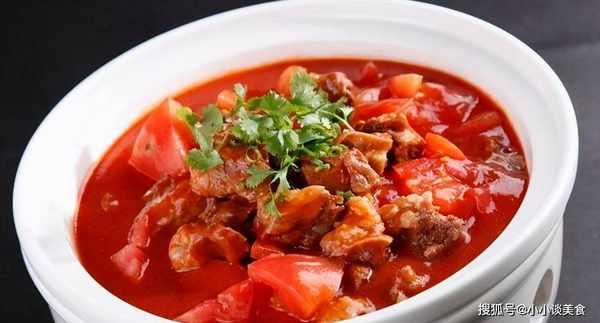 7.另起一锅炒西红柿。汤煮好后,加半碗水烧开,倒入里脊锅,加入冰糖6粒,盐3勺调味,继续文火煮30分钟至里脊熟透。