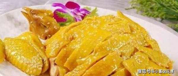 4.将放凉的整鸡摆盘,将烧热的鸡粉酱均匀淋在鸡肉上,撒上少许白芝麻,撒上葱花和香菜叶即可食用。