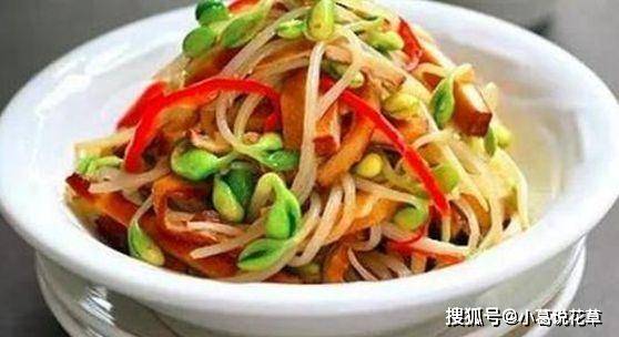 材料:黄豆芽140克,薄香干3片,红辣椒1个,大蒜3瓣。生抽11/2汤匙,糖1茶匙。