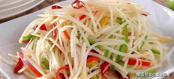 材料:土豆、葱、蒜、姜、红辣椒、青椒、红辣椒、香菜、香醋、生抽、盐适量