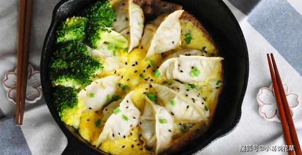 1.将速冻的饺子放入铁锅中,加入油,小火煎熟,盖上锅盖,稍煮。