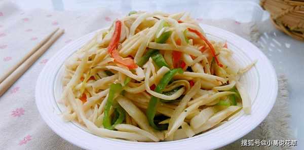 做法1、香菇用水泡软,用剪刀剪去脚,切成条状。