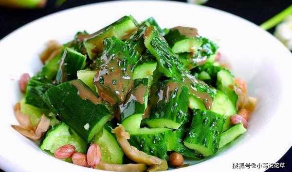 2、黄瓜洗净,放在砧板上压碎,切成小块备用。