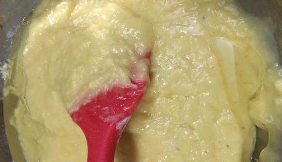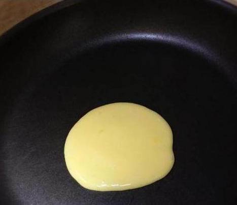 将不粘平底锅烧热,然后转成小火,将面糊装入裱花袋中(家里没有裱花袋的可以用保鲜袋代替)用剪刀将裱花袋剪个口子