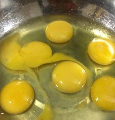 对着平底锅中间轻轻挤压,小火煎至起泡;