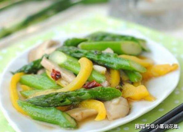 做法:1.芦笋切片,香菇切片,黄椒切丝。
