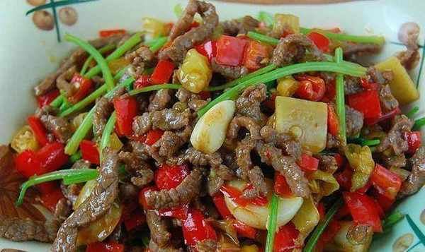 原料:牛肉、青椒、大蒜、盐、鸡精