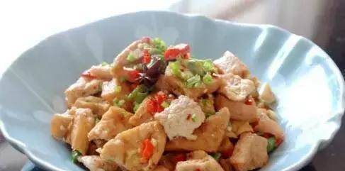 4.炸豆腐炖至入味(约2-3分钟),揭盖转大火收汁,将青蒜叶放入锅中翻炒两下即可出锅出锅时香。(喜欢吃辣的也可以加一小勺红辣椒油)