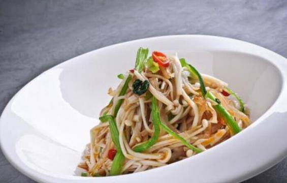 食材:金针菇、红椒、香芹、食盐、姜、蒜、植物油