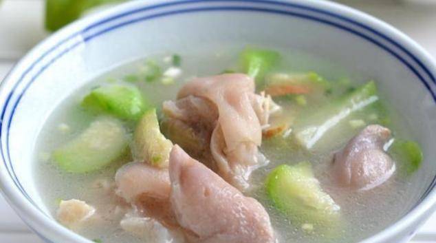 食材:红枣30克、黄耆、枸杞子各12克,当归5克、猪前蹄1只、丝瓜300克、豆腐250克、香菇30克、姜5片、盐少许