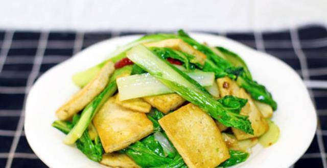 食材:卤水豆腐、白菜、干辣椒、老抽、生抽、盐、葱姜蒜
