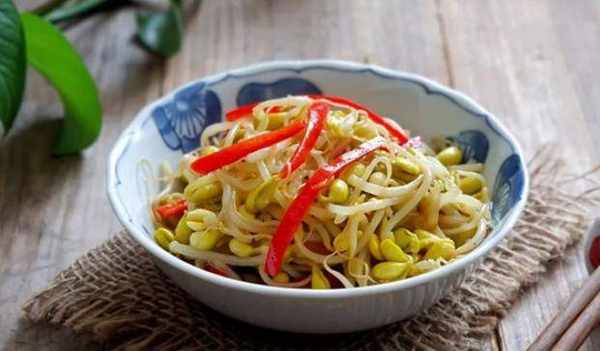 食材:黄豆芽300g、姜、红尖椒、生抽、盐