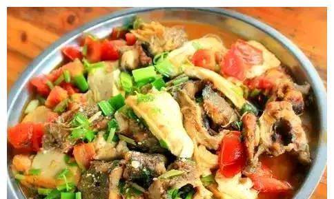 3、锅再烧,倒油,放炸好的鱼,加入葱、姜、青红椒、啤酒、蚝油、料酒、生抽、鸡精、盐、鸡汤焖5分钟,加入罐子煮熟后的番茄和香油