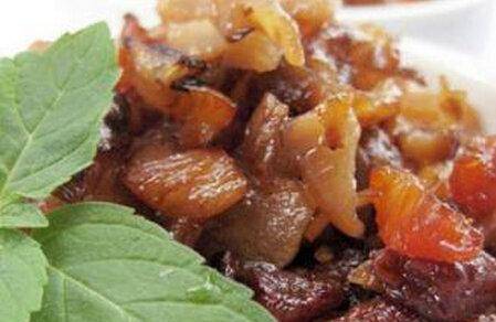 5、辣椒酱可以用油做,柠檬也可以用醋代替。将准备好的调料撒在肉片上,撒上少许葱花装饰一下!