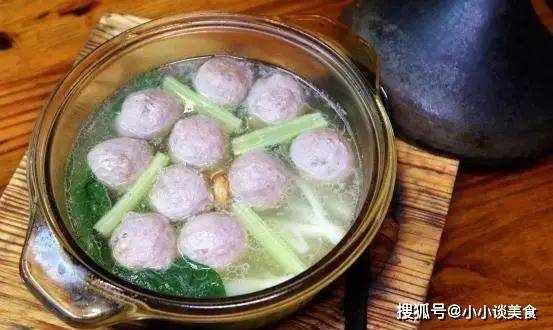 肉切块,倒入几滴生抽,上色加盐,花椒少许,拌匀揉成球状。将青菜和香菇洗净,切或不切,锅中加入冷水煮姜,下青菜和香菇,煮熟,回小火,加生抽、盐、糖等。锅内放调料,倒入丸子煮约5分钟,即可出锅。