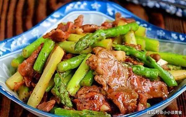 做法:1、牛肉洗净,切片,加盐、热酒、黑胡椒汁、生粉腌半小时,芦笋去老皮,洗净切片,准备蒜末;
