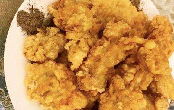 刚炸好的酥肉撒上孜然,搭配一碗米饭,一口下去,感觉自己在人间天堂!各位有时间的网友也在家里试试,加上啤酒味道真的很棒!