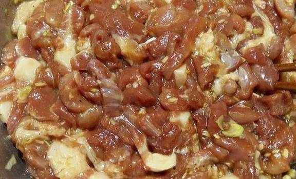接着再放入葱、姜、蒜末,再次的搅拌。这时候不要放水,用啤酒来代替。加入啤酒以后再次搅拌一分钟。
