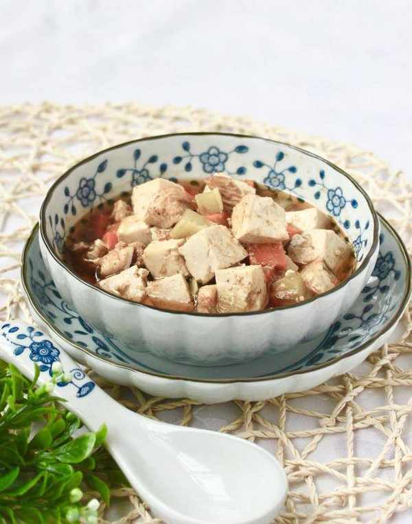 步骤:1.将豆腐、鸡肉、红萝卜和沙拉切丁