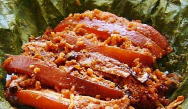 3、锅内放入1斤色拉油,加热至40%温度,将肚皮炸至金黄,捞出控油,切成厚片,加入调料拌匀,蒸30分钟。