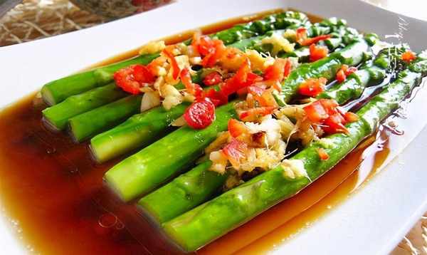 做法:1、芦笋洗净,切掉末端较硬的老茎;