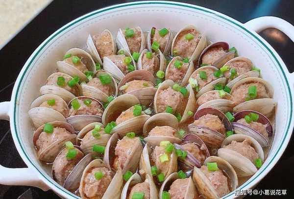 4、蛤蜊打开放入肉末,装盘,蒸锅烧开水,上锅蒸12分钟左右。