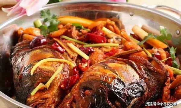 8、最后大火收汁,收汁时将浓汤浇在鱼头上上色。当锅里还有一点肉汁时关火。