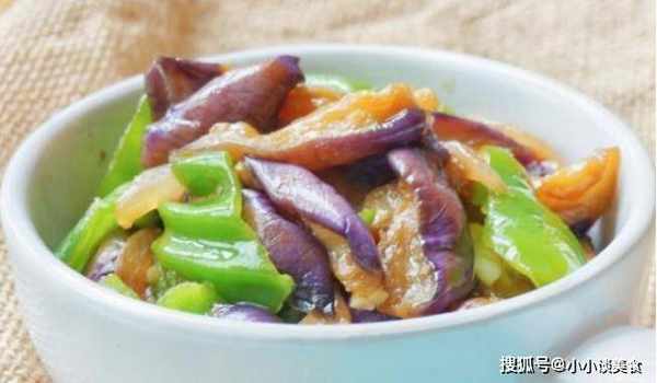 4、放入青椒,加入一茶匙糖,2汤匙生抽代替生抽,炒至茄子和青椒爆裂。