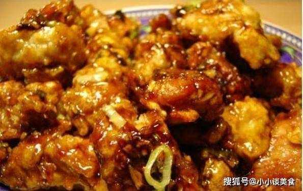 4.将酱汁淋在鸡块上。