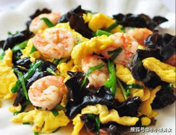 5、倒入虾仁继续重复,直到鸡蛋和虾仁在锅中央慢慢烤至八九成熟即可关火。