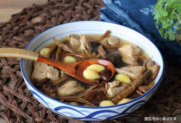 材料:老鸭半只、白果适量、茶树菇适量、生姜一片。
