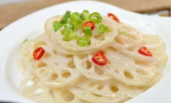 4、莲藕片煮沸后放入冷水中,最后一次放入冷水中。