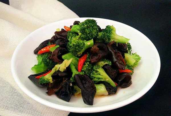 -材料-西兰花1个,干香菇1把,小米椒少许,盐,酱油少许。