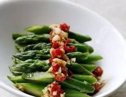 1、芦笋去老皮,放入沸水中焯一下;魔芋丝焯水备用。