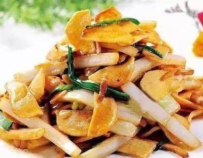 原料:茭白150克,猪肉片40克,蒜苗20克,白菜50克各1000粒,大葱、姜末各5克。