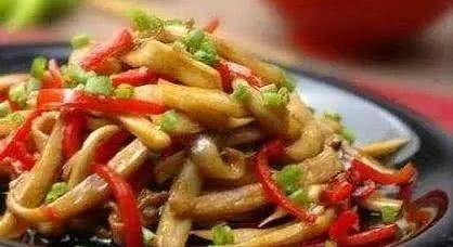 原料:杏鲍菇500克,香菜200克,干辣椒1大把,盐1茶匙,酱油1/2茶匙,鸡汤1茶匙,植物油2茶匙。