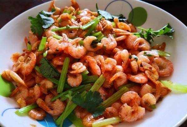 材料:河虾、芹菜、油、盐、糖、料酒、鸡汤、香油