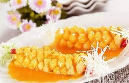 原料:洗净的草鱼肉1斤,葱、花椒几圈。白糖200克,白醋100克,黄酒20克,盐10克,色拉油2公斤(实际用量200克),生粉250克,浓缩橙汁适量。