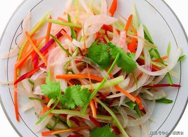 配料:白萝卜350克,胡萝卜50克,花椒3克,油30毫升,盐适量,醋5克,鸡粉3克,白糖3克